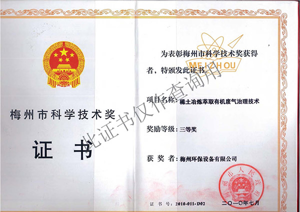 梅州市科学技术奖三等奖